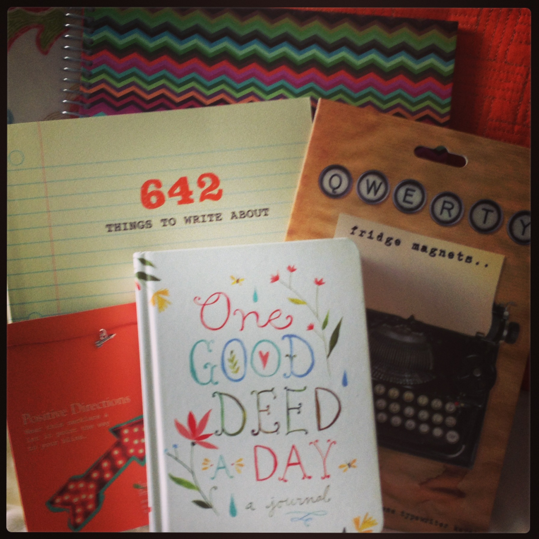 At Paper Source, I ventured upon a gift givers mecca.  There were so many fun gift ideas, creative cards and pretty wrapping to dress them up.  My purchases included – a fun notebook, QWERTY type magnets, a “positive directions” necklace, and my fave “One Good Deed a Day” journal book (sad that we have to be reminded to do this, isn’t it?).
